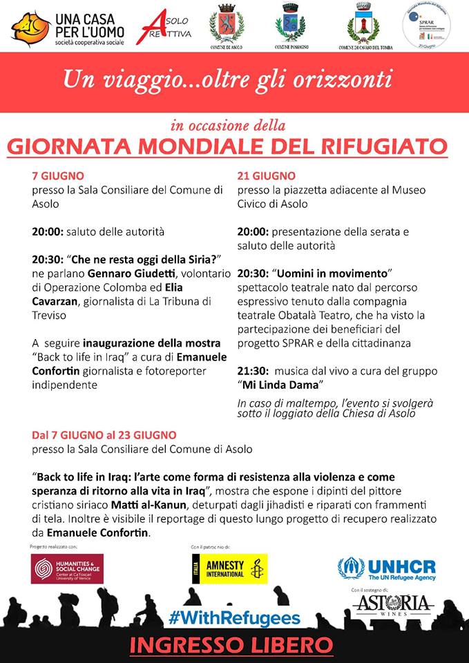 In occasione della Giornata Mondiale del Rifugiato, Una Casa per l’Uomo e Asolo ReAttiva vi invitano all’evento “Un viaggio…Oltre gli orizzonti”.